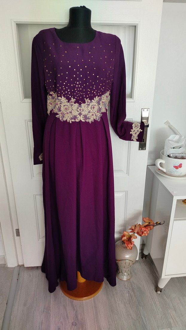 42 beden Uzun Mor İşlemeli Kadın Abiye