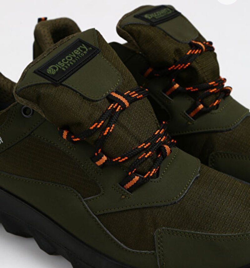 43 NO Discovery Expedition waterproff su geçirmez ayakkabı Discovery marka, koyu yeşil kamuflaj desenli, bağcıklı ve kauçuk tabanlı erkek outdoor ayakkabısı, şık ve rahat sokak stili için uygundur.