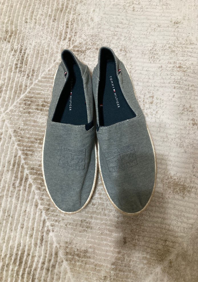 Gri keten espadriller, desen içermeyen sade tasarımıyla günlük sokak stiline zahmetsiz şıklık katıyor. Rahat ve gündelik kullanım için uygun. Birkaç kere giyildi .