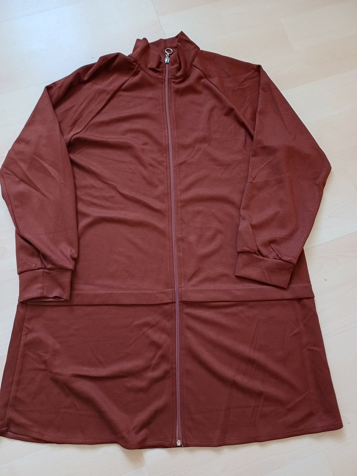 Kahverengi fermuarli penye eşofman takimi. Rahat kesimli, yumuşak kumaştan üretilmiştir. 44-46 beden uyumludur. koltuk altından 56 cm uzunluğu 90 cm dir. Eşofmanin boyu 95 cm dir. Hiç giyilmedi sıfır üründür. Rengi kahverengi ama ışıktan kaynakli farkli görülebilir.