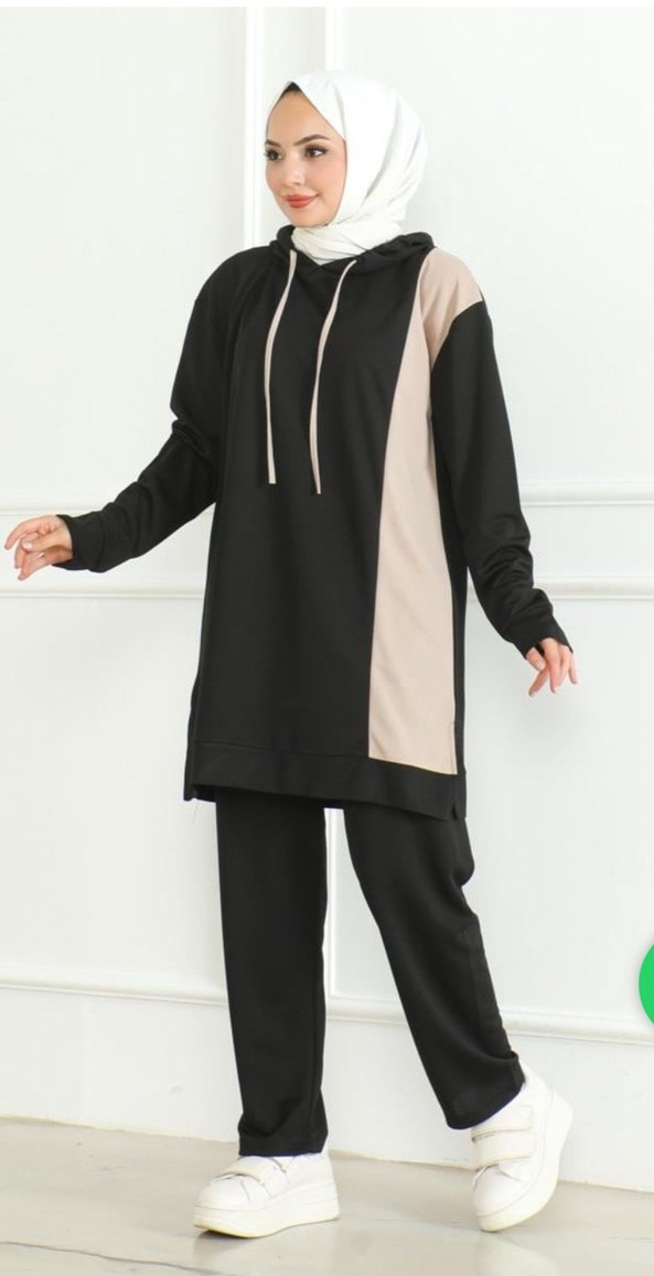 2Lİ TAKIM TUNİK kapişonlu pantolon bel lastikli esnek likrali etiketli sıfır 2Lİ takım eşofman takımı