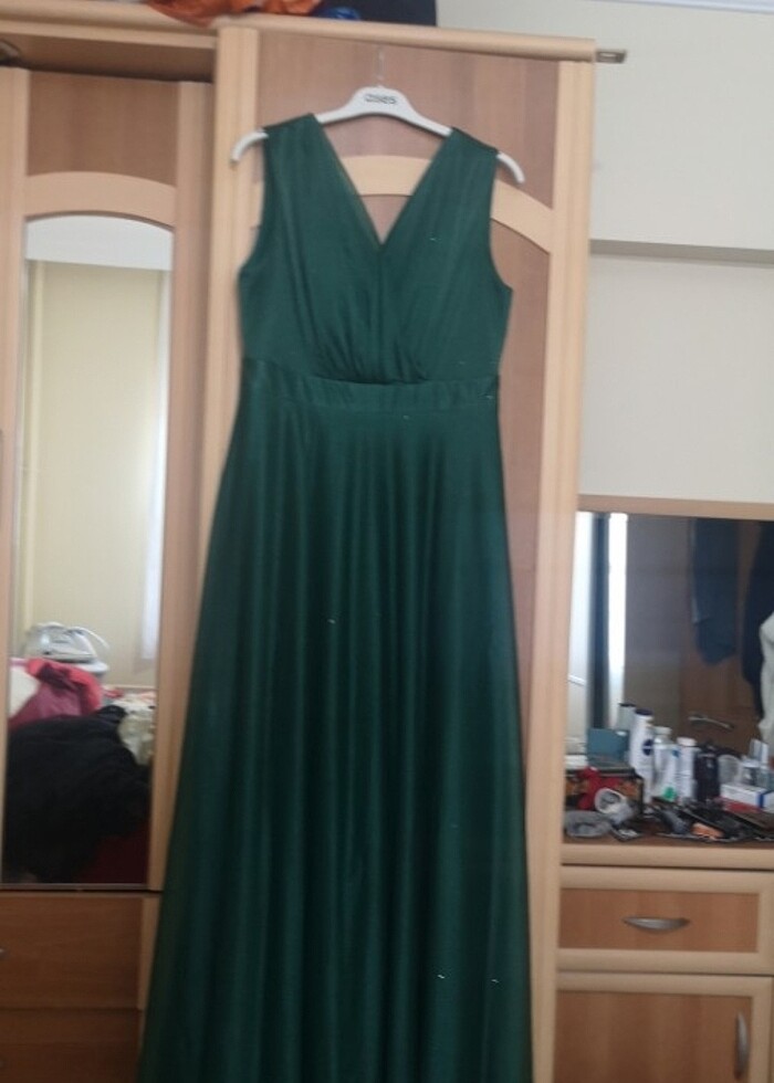 44 beden yazıyor ancak 42 bedene olur ben 42 ile giydim sırtı tam kapandı . 44 iseniz olmaz . Sadece bir kez giydim 1600 tl ye aldım 2 hafta önce sıfırını. Simli abiye Göğüs 50 cm Bel 40 cm Boy 150 cm