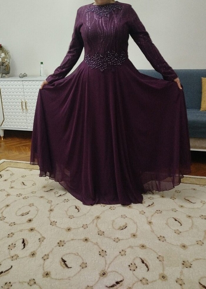 Ürün çok iyi durumda bir kez kullanıldı bordo renk üst detay tül işlemeli kemer bölümü nakışlı şık bir uzun abiye elbise