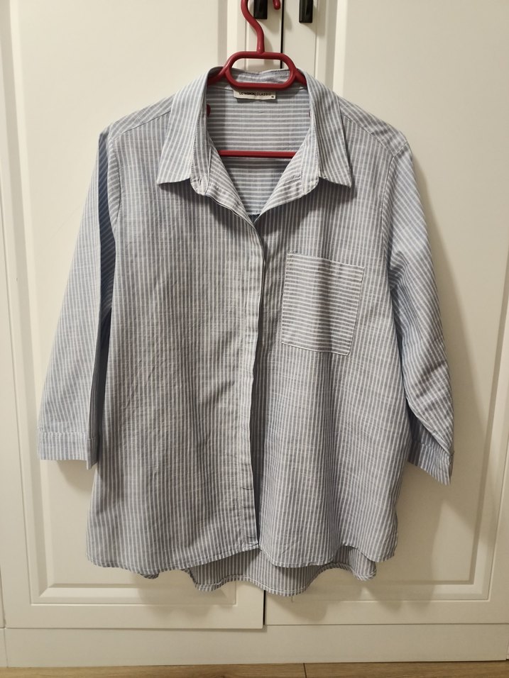 46 beden İnce yazlık .kol 4/3 boy bol kesim (fotoğraflarda gösterilmiştir ) pamuklu gömlek. yanlardan yırtmaçlı ve arka öne göre daha uzun yine fotoğraflarda gösterilmiştir. ön kapalı düğme şeklinde arka pensli olduğu için çok rahat bir gömlek. hiç kullanılmadı bedeni görmek için bir kez yıkandı etiketi mevcut değil.