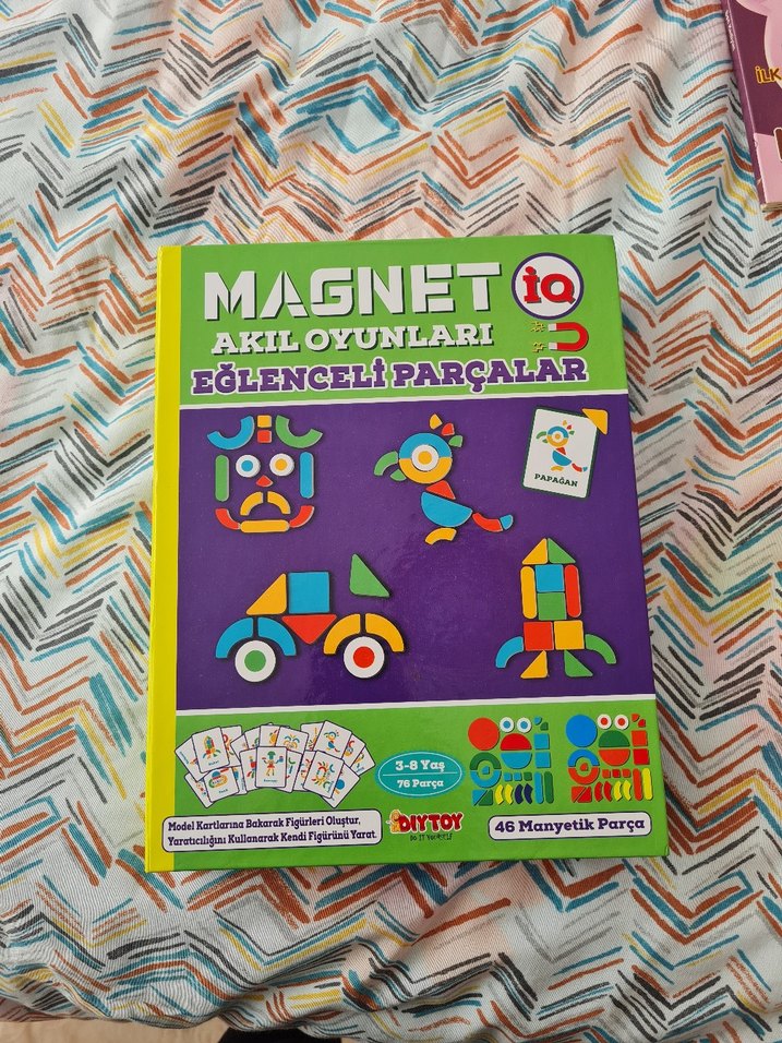 3-8 yaş arası çocuklar için 46 parçalı renkli manyetik akıl oyunu seti, yaratıcı oyun ve mantık geliştirmeye uygun.Tablosu kopuk sadece silikonla yerine yapistirilabilir biz öyle kullandık.