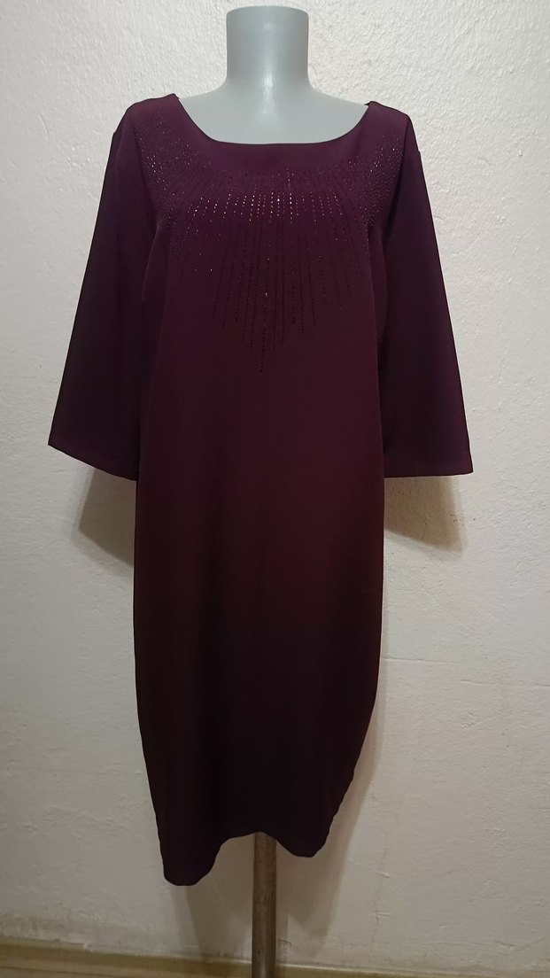 48 beden bordo renk yaka kısmı ışıltılı likralı elbise