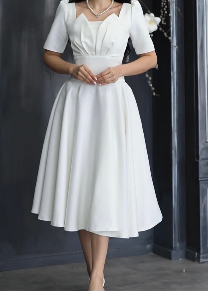 Şık ve çok zarif midi beyaz elbise Ürün 46-48 bedendir, üst beden olduğu için özel dikimdir Nikah elbisesi olarak da kullanılabilir