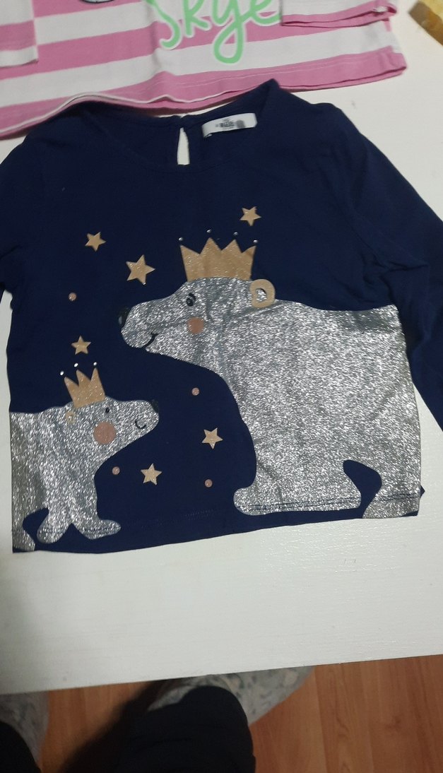 4adet tşort Kız Çocuk Mavi Simli Uzun Kollu Tişört tane 60 tl