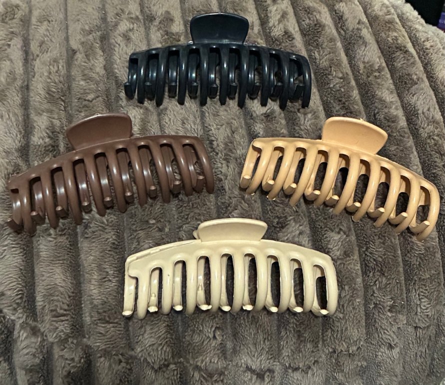 Kahverengi ve siyah plastik malzemeden yapılmış, tokalı tasarıma sahip rahat ve vintage tarzda saç tokaları seti.