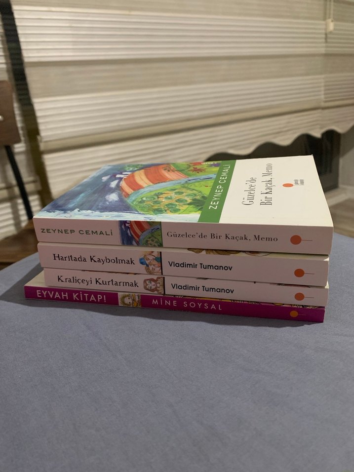 Zeynep Cemali, Vladimir Tumanov ve Mine Soysal'ın romanlarından oluşan bir set. 'Haritada Kaybolmak', 'Kraliceyi Kurtarmak', Eyvah Kitap ve Güzelce’de Bir Kaçak, Memo kitaplarından oluşan 4’lü set. Hiçbir kusuru yoktur.