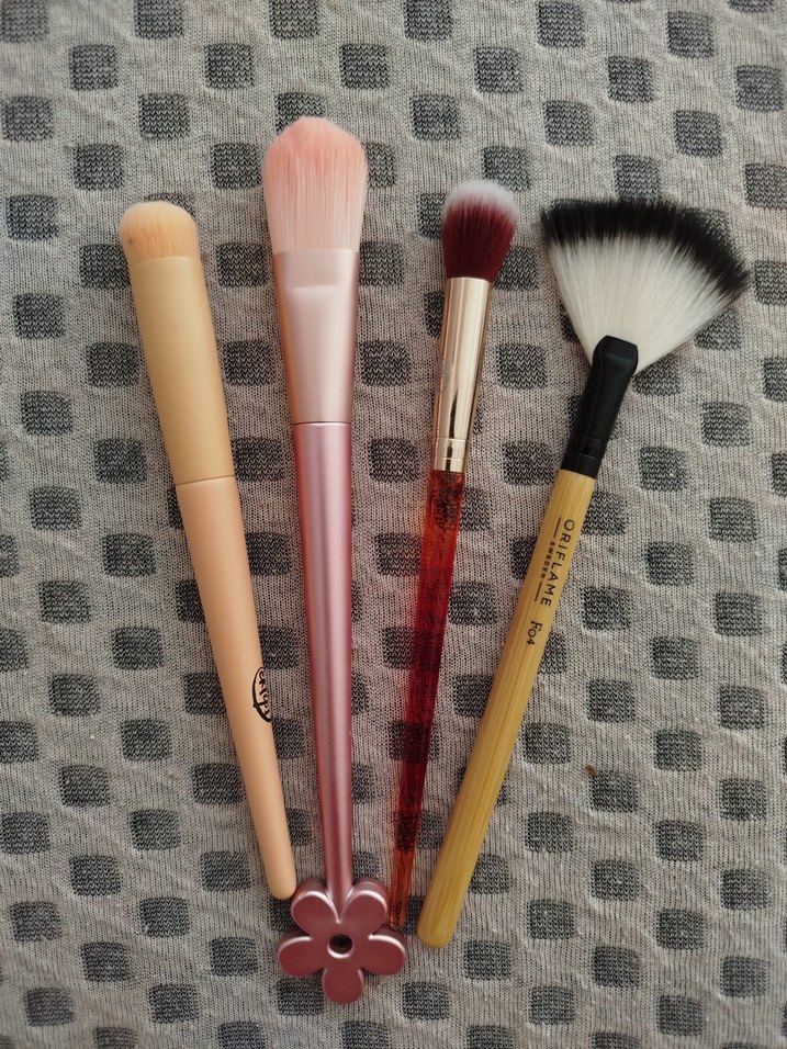 kapatıcı, fondöten, far karıştırma ve aydınlatıcı fırçası olmak üzere 4 tanedir. ilk fırçadaki minik iz hariç hiçbirinin sorunu yoktur 2. fotoğrafa ekledim. toplam fiyattır.