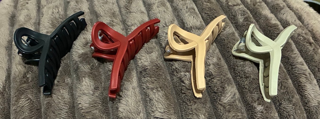 Kırmızı ve gri plastikten yapılmış, tokalı, karşı kültür ve avangart tarzda saç tokaları. Saçı rahatça tutmak için uygundur.