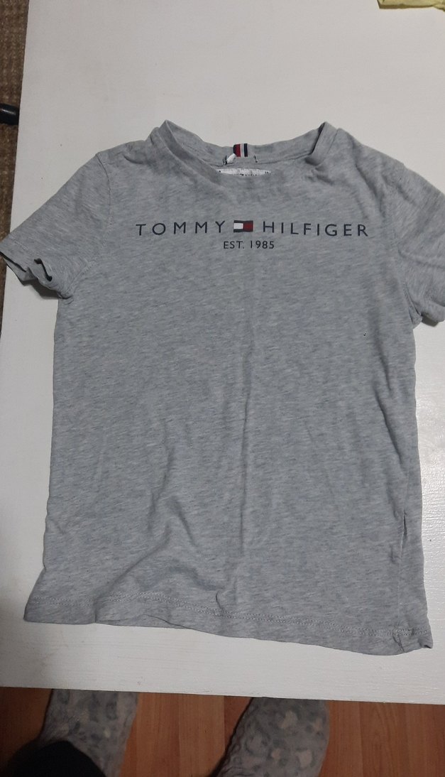 sarı tşort hediyemdir Pamuklu gri kumaştan yapılmış, kısa kollu ve bisiklet yaka erkek tişörtü. Önünde "TOMMY HILFIGER EST. 1985" baskısı bulunur. Trend sokak giyimi için uygun.