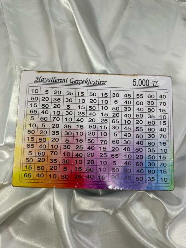 Renkli sayı tablosu ve "Hayallerini Gerceklestirir" yazısı içeren, 5.000 TL işaretli canlı ve açık renkli puzzle.