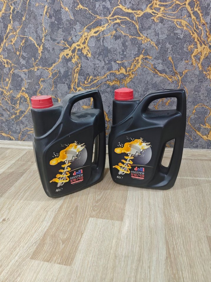 Kırmızı kapaklı siyah plastik kaplar, her biri 4 litre sıvı mekanik yağ içerir, yerli üretimdir ️