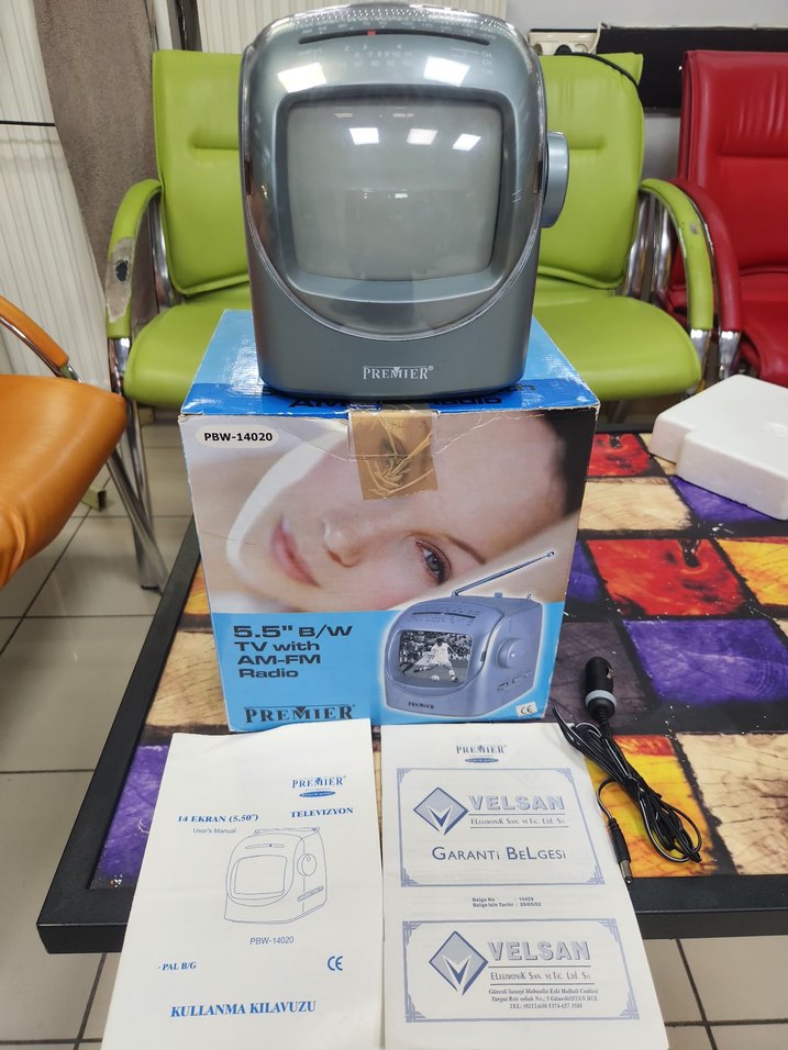 Gri renkte 5.5 inç siyah beyaz TV ve AM/FM radyo. Velsan garanti belgesi ve kullanım kılavuzu ile beraber.sıfır ürün fyt temsilidir