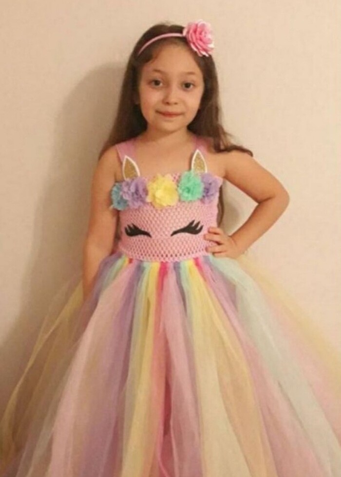 5-6 yaş Kız çocuk unicornlu abiye kostüm elbise kızım sadece iki kez kullandı tertemiz duruyor hiç bir deformesi yok