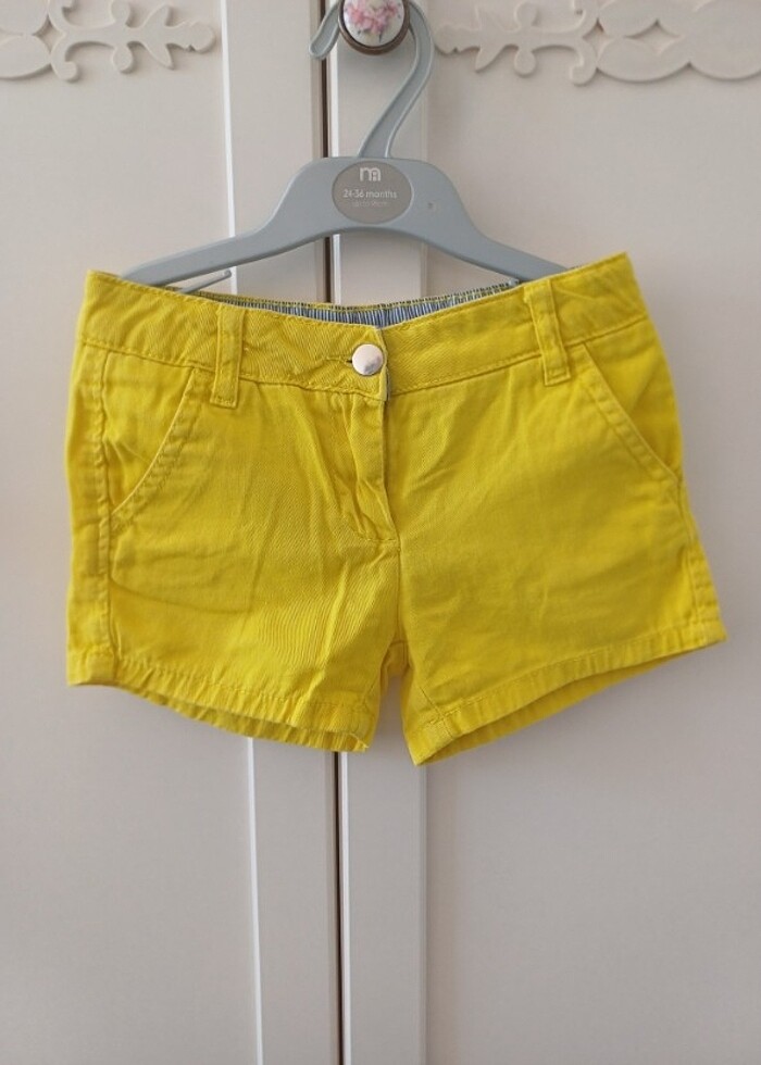 5-6 yaş temiz kullanılmış sarı beli lastikli ve ayarlanabilir koton marka şort #etek #elbise #tayt #mayo #ceket #tişört #abiye #tütü #zara #yelek