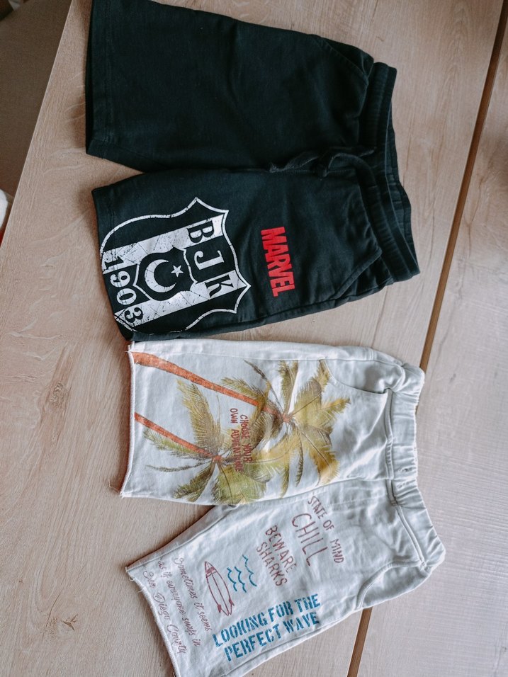 Marvel baskılı, pamuklu siyah erkek şort, rahat kesim ve elastik bel ile günlük sokak modasına uygun.gri olan zara, siyah olan LCW marka. etiketlerini kopartmaştım.