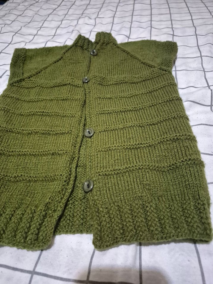 5/6 yaşa uygun düğmeli yeşil el örgüsü kolsuz yelek