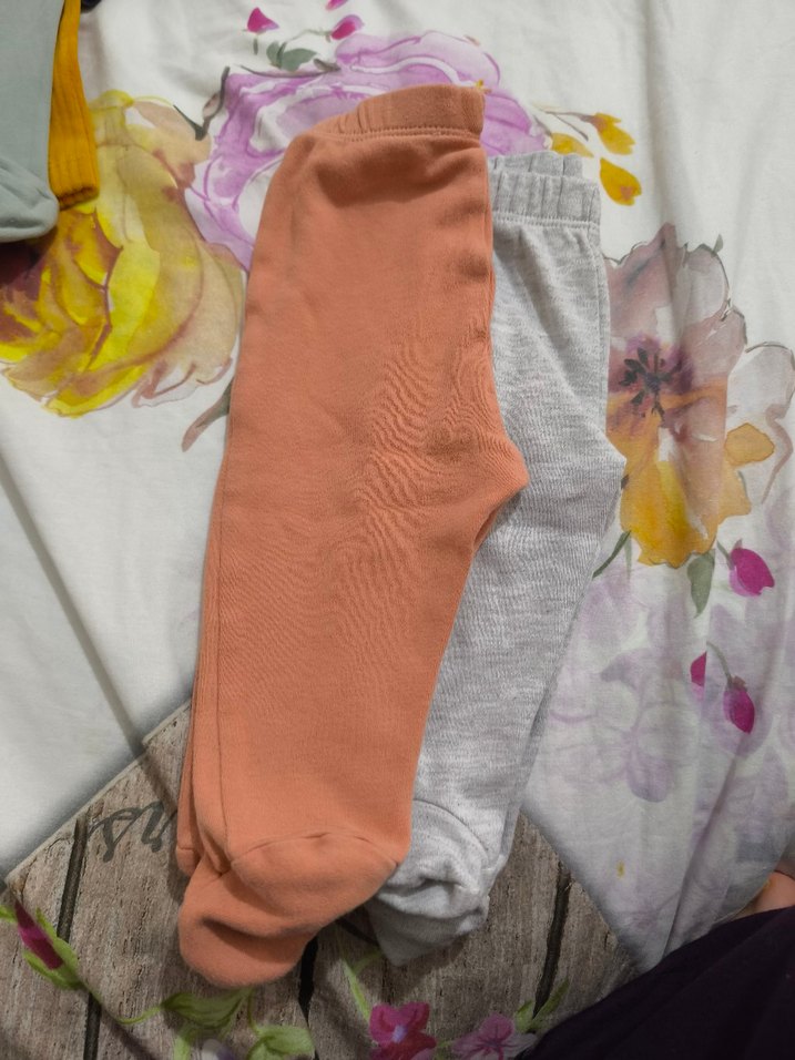 Gri ve somon renklerde, elastik bel bantlı, yumuşak ve sıcak kumaştan yapılmış kız erkek çocuk taytları. Trendy ve rahat stil için uygundur.