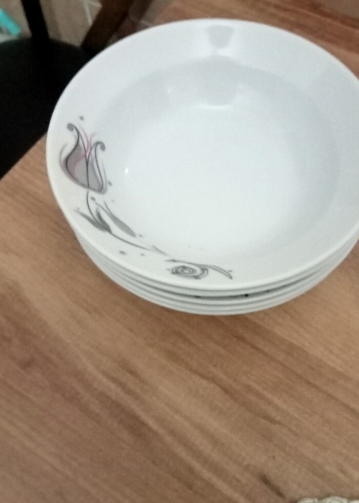 2 adet gül desenli 3 adet çizgili güral porselen kase Bir tanesi hafif çatlak