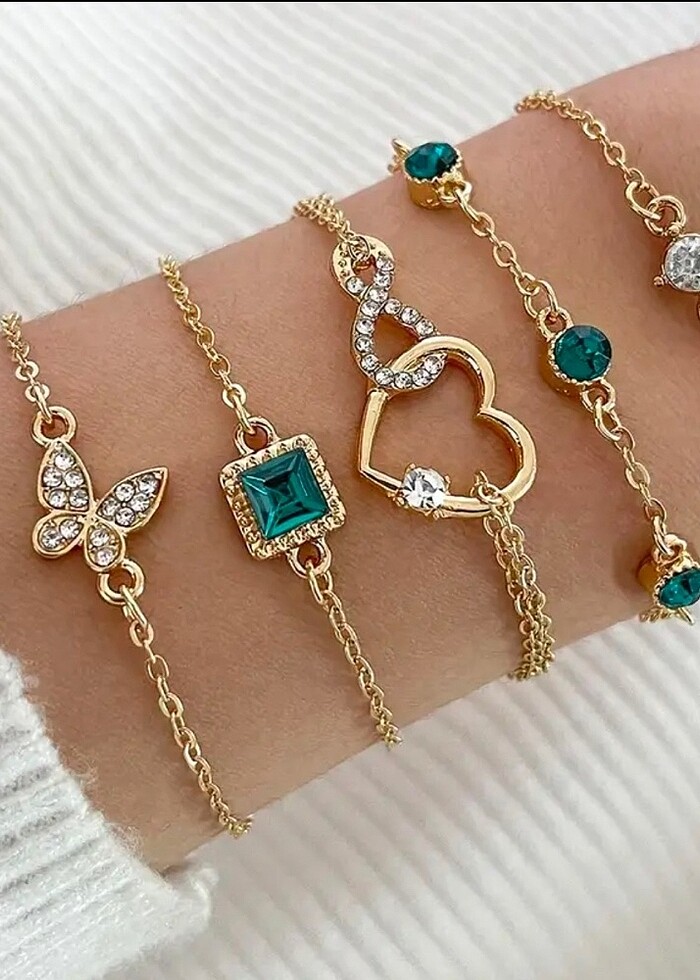 5 adet gold yeşil pırlanta mücevher seti