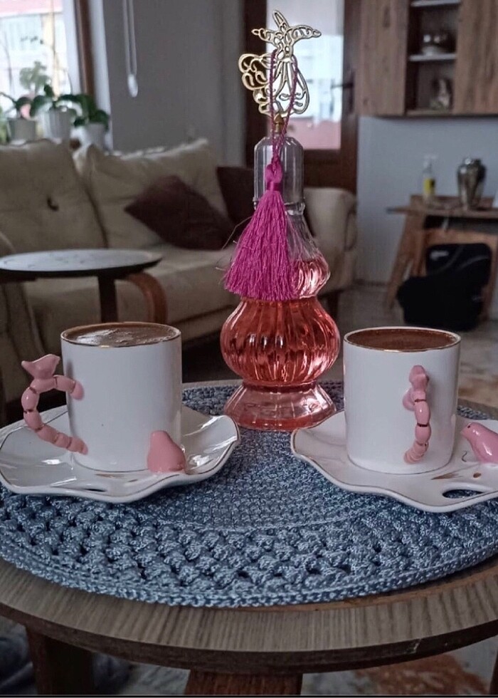 Aldığım mağazada son kalmış bu takımın da teki kırılmıştı o yüzden 5 li olarak almıştım, 5 li olarak satacağım. Hem tabağında hem fincanında kuş figürü var , büyüklüğü de çok makul .Bir fincankolik olarak evde koyacak yerim kalmadığından satıyorum kıyamasam da, ikili almak isteyenlere