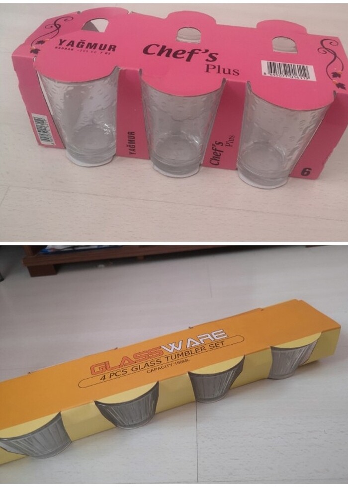 5 adet su bardağı cam ve 4 adet kase