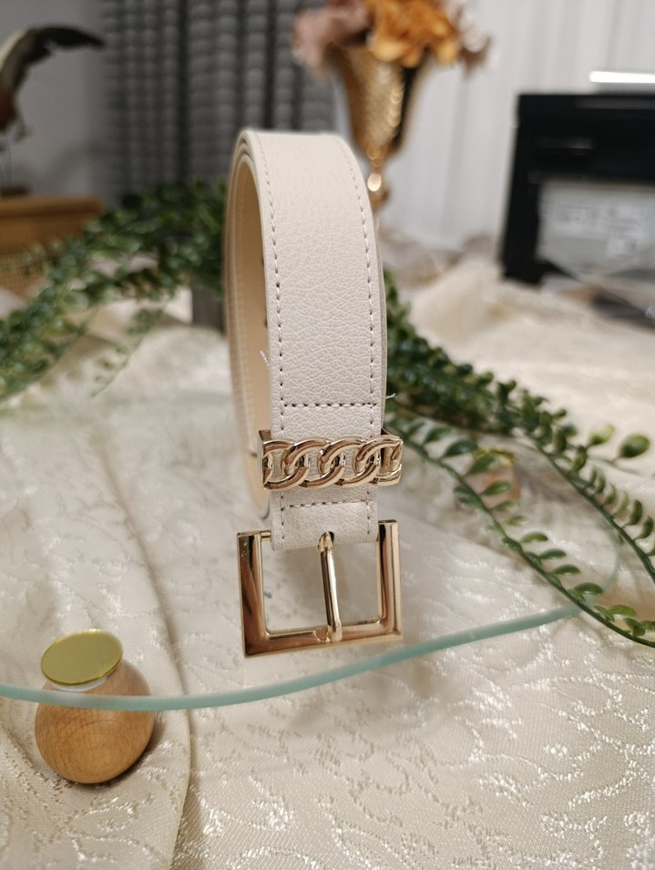 5 farklı renk deri kemer, altın zincir detayı ve kare altın tokası ile trend günlük kombinlere uygun.✨