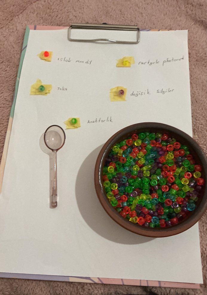 5 kaşık boncuğun içinden çıkan renklerin eşyaları ile eşya seti (anlamdıysanız sorabilirsiniz)