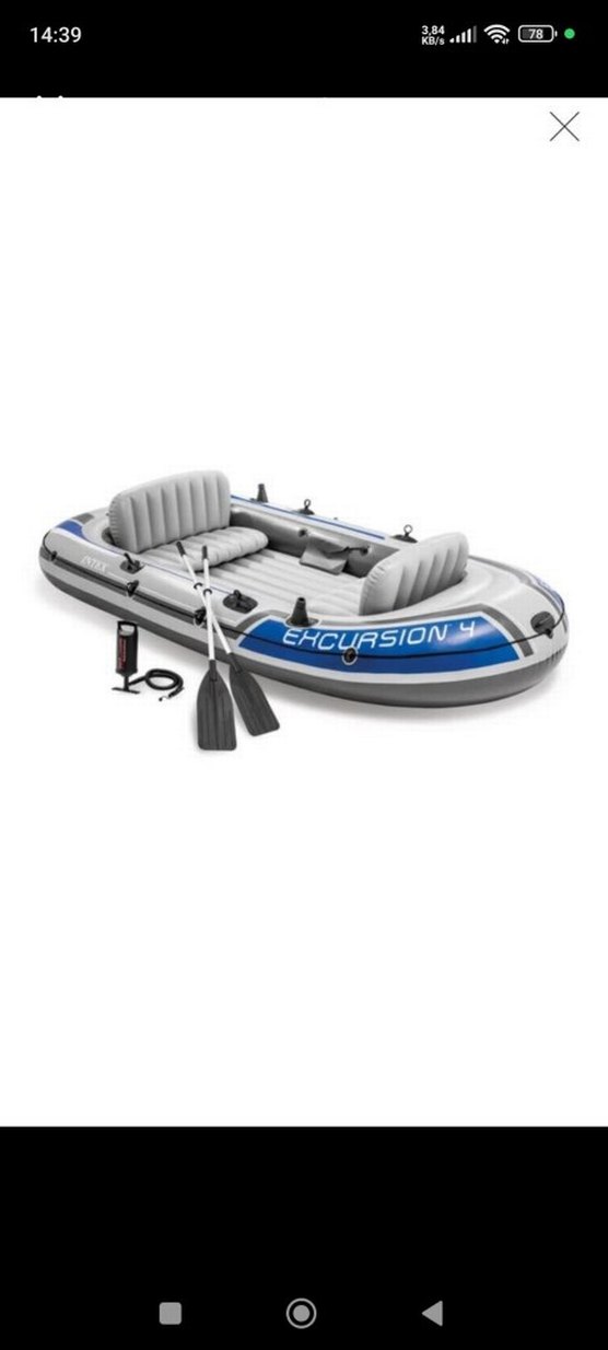 İki yastıklı koltuğa sahip şişme bot, iki kürek ve pompa ile birlikte gelir. Mavi ve gri renklidir. bot motoru ve motor takma aparatı dahildir