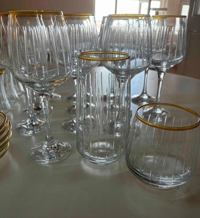 5 kişilik su seti kristal kendinden desenli gold detaylı