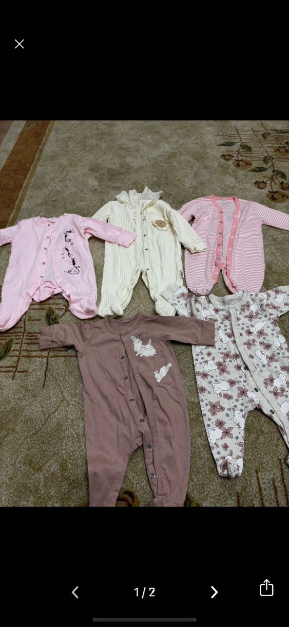 Pastel renklerde, yumuşak dokulu 5 adet bebek triko tulum seti. Çizgili, çiçekli ve düz desen seçenekleri ile rahat kullanım sağlar.