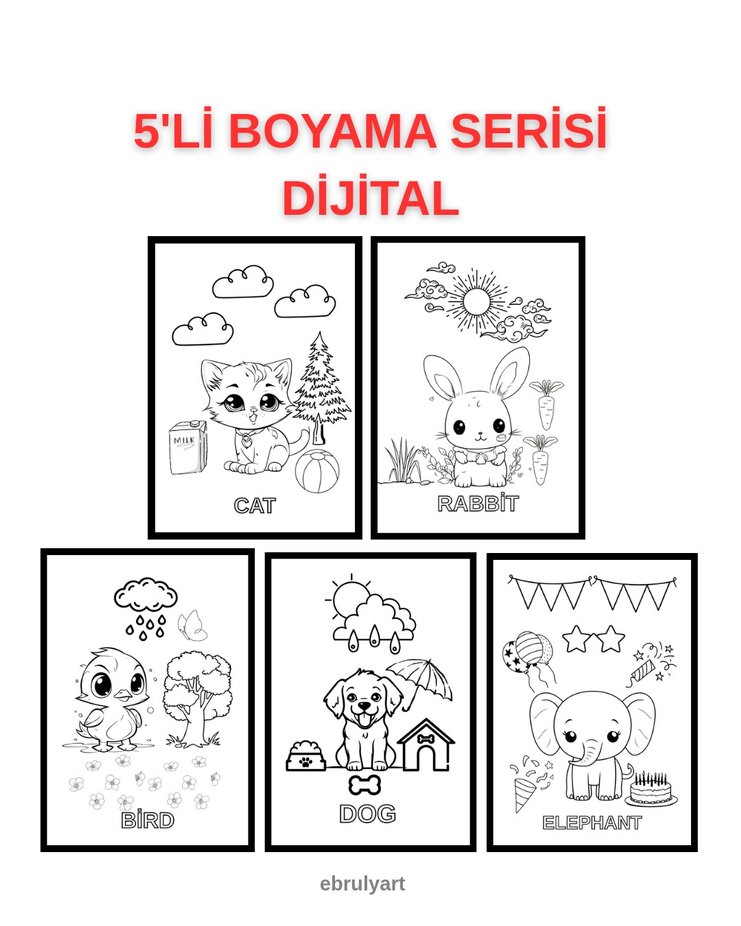 5'li Dijital Hayvan Boyama Kitabı Serisi