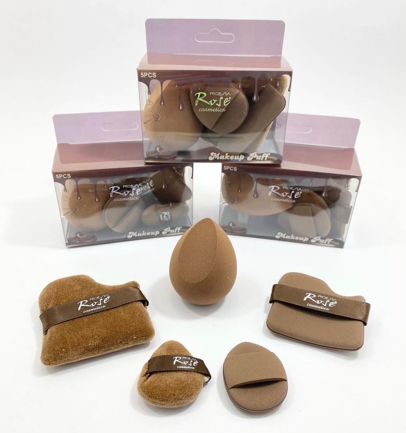 Koyu bej renkte, farklı şekillerde 5 adet makyaj süngeri ve puff seti. Pürüzsüz makyaj için uygundur.