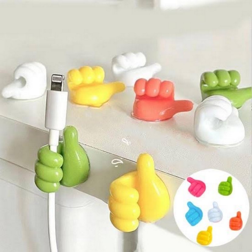 Renkli başparmak şeklinde kablo tutucular, kablolarınızı yerinde tutarak masanızı düzenli tutar. Birden fazla renkte mevcuttur.