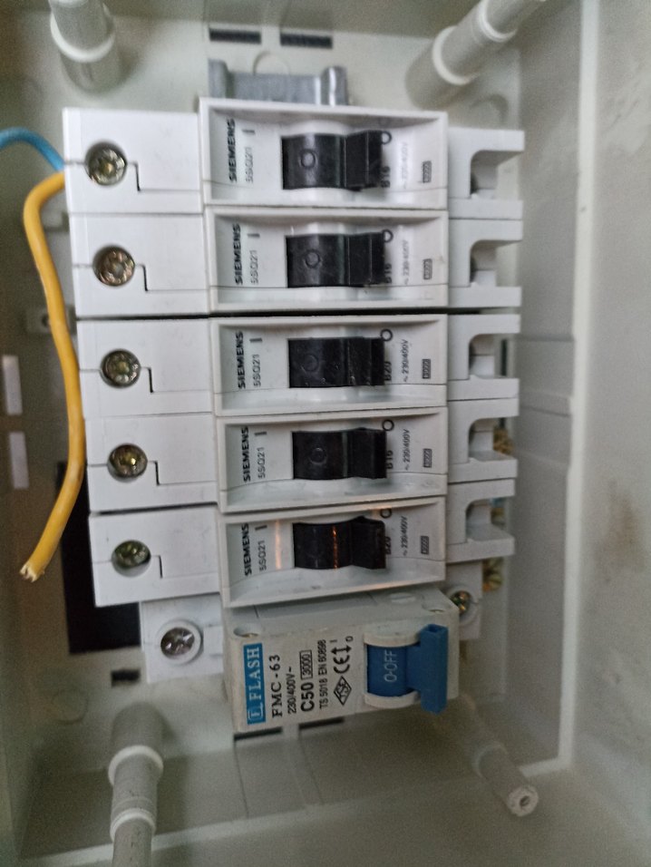 Elektrik güvenliği için anahtarlı gri beyaz 5'li sigorta kutusu seti. ⚡