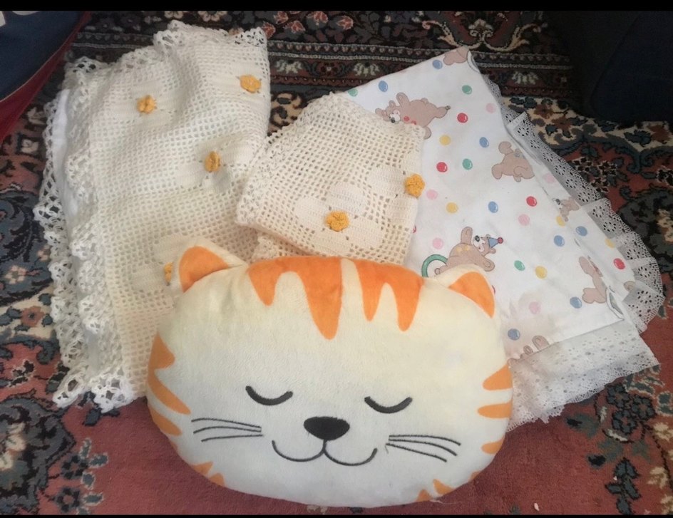 El emeği, araba da az ve temiz kullanılmış bebek battaniyesi. Yüz bezi, alt açma örtüsü, pamuklu çarşaf ve yumuşacık kesi yastık