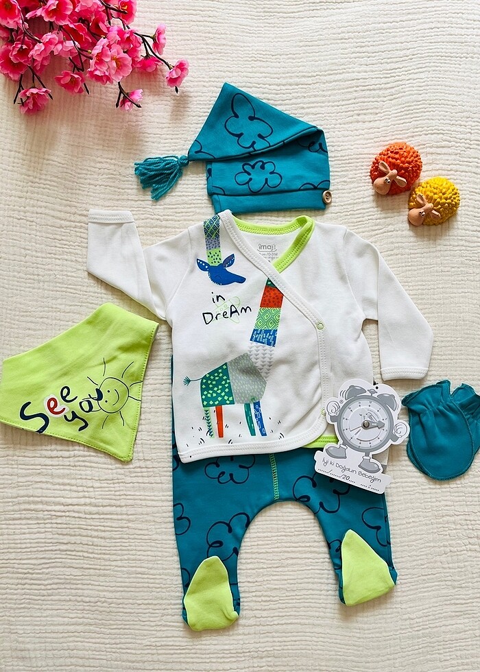 5 parçadan oluşan yenidoğan hastane çıkışı bebek takımı