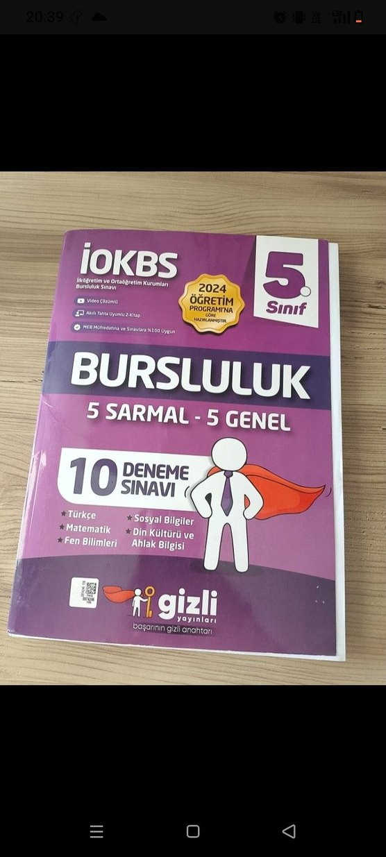 5. sınıf için 2024 programına uygun, Türkçe, Matematik, Fen Bilimleri, Sosyal Bilgiler ve Ahlak Bilgisi konularını içeren 10 bursluluk deneme sınavı kitabı.