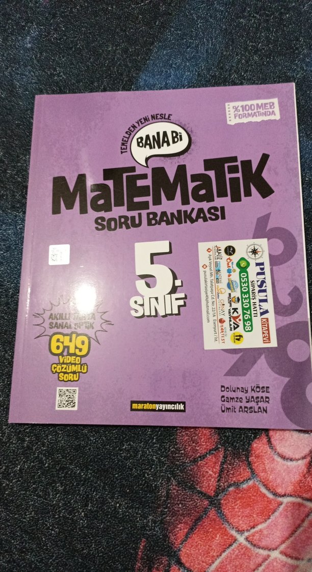 5. sınıf matematik soru bankası, %100 MEB müfredatına uygun 649 video çözümlü sorudan oluşur. Maraton Yayıncılık tarafından yayımlanmıştır. 192 sayfa.5 sayfa çözülmüş