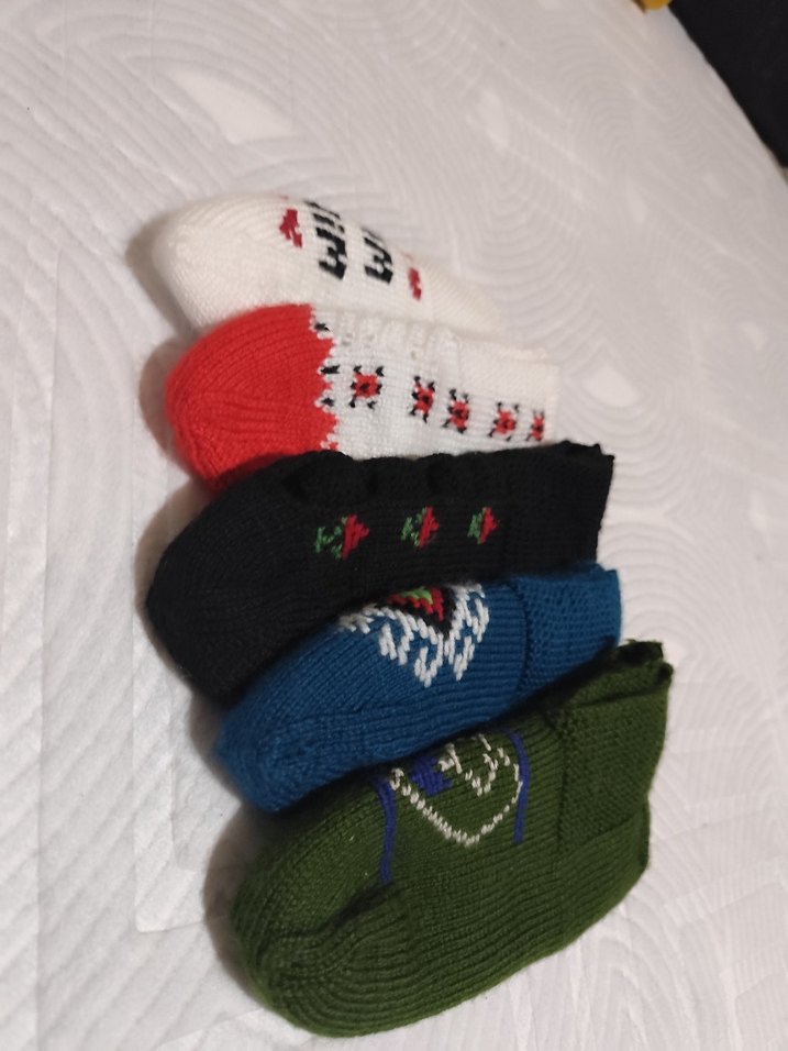 Beyaz, kırmızı, siyah, mavi ve yeşil renklerde nakışlı desenlere sahip renkli bayan patik her numarası vardır