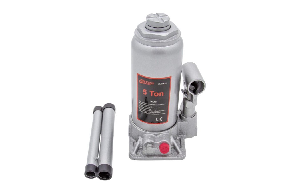 Astor marka 5 ton kapasiteli gri hidrolik kriko. Sağlam metal yapısı ve kompakt tasarımıyla ağır yükleri kaldırmak için uygundur. Çıkarılabilir kol parçaları içerir.