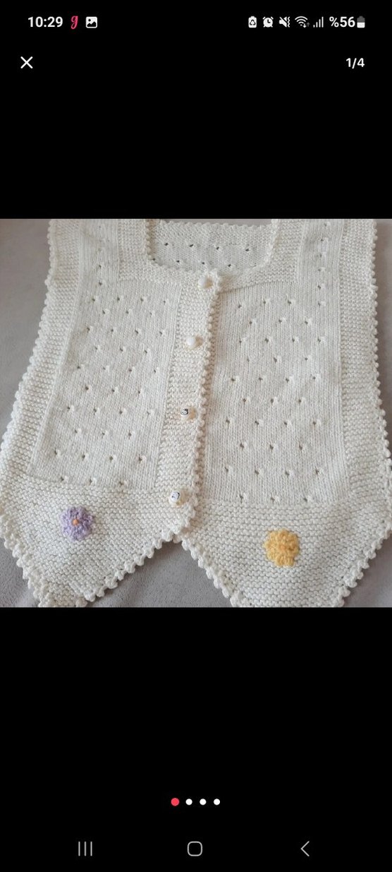 Kız çocuk için krem rengi, düğmeli, bohem tarzda, kolsuz ve bol kesim yelek. Ürün sıfırdır. Herhangi bir deforme veya tiftiklenme yoktur. Orijinal el örgüsüdür. yeleğin modeli önü arkasından daha uzun. 3 yaştan 7 yaşa kadar giyilebilir. Ölçülerini resimlerde paylaştım.
