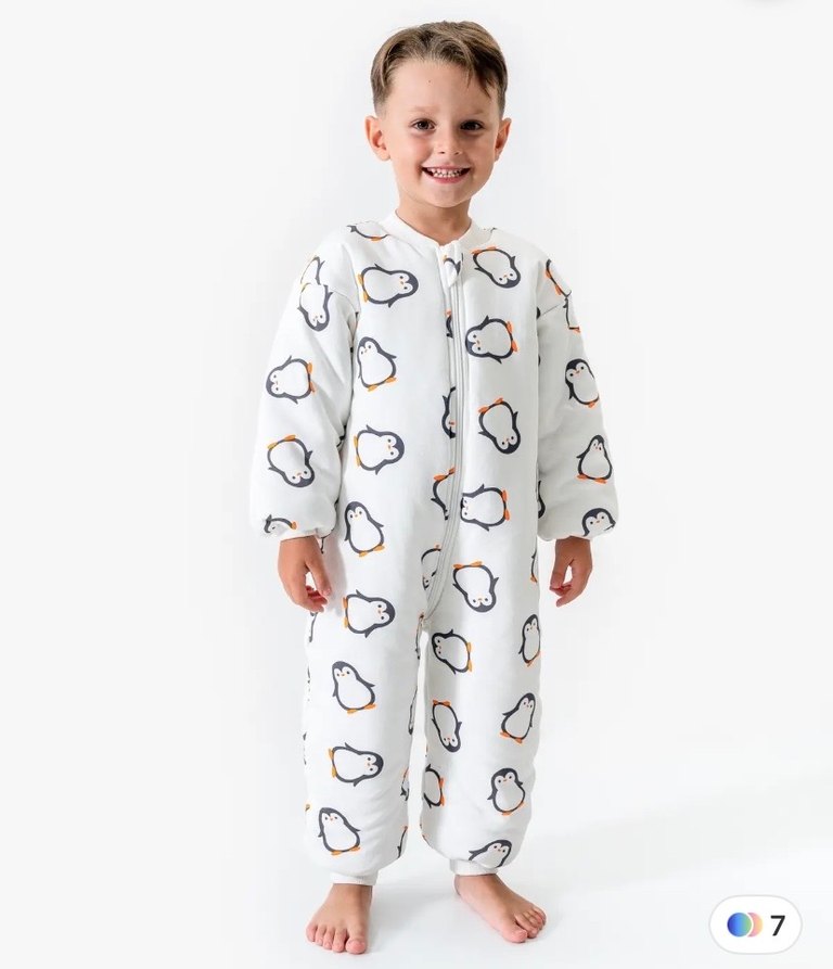 Erkek çocuklar için beyaz zemin üzerinde renkli penguen desenli, uzun kollu, pofuduk ve bol kesim tulum. 1 kere giyildi defosu yoktur oglum sevmediği için satıyorum