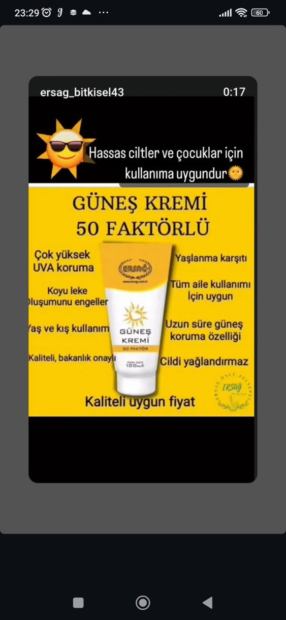 SPF 50 güneş kremi, çok yüksek UVA koruması sağlar. Hassas ciltler ve çocuklar için uygundur. Koyu leke oluşumunu ve yaşlanmayı önler, cildi nemlendirir, tüm aile için uzun süreli koruma sunar. Bakanlık onaylıdır. ☀️