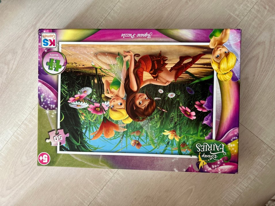 Peri karakterleri ve canlı çiçekler içeren renkli çocuk yapbozu, yaratıcılığı ve problem çözmeyi destekler.