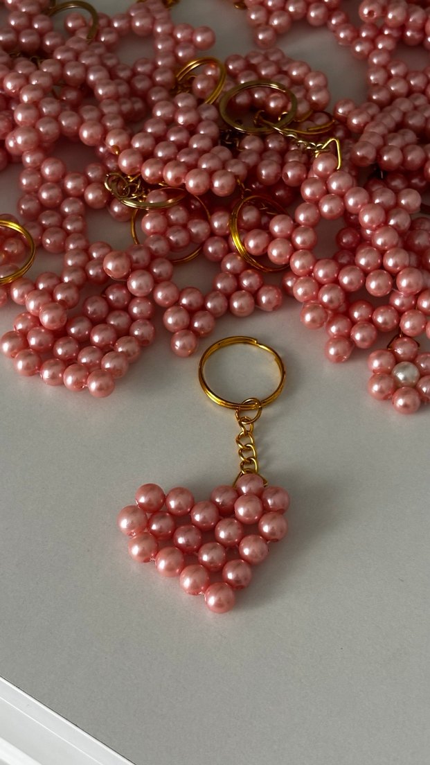 50 Pembe Boncuklu Kalp Anahtarlık
