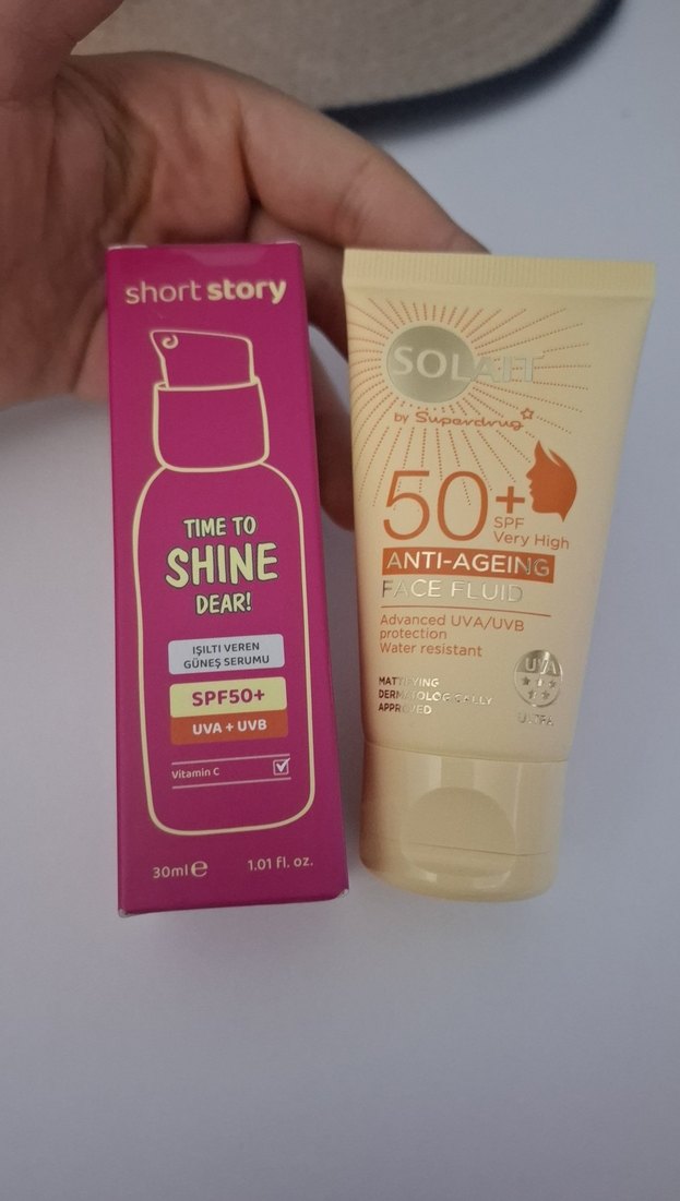 Çok yüksek koruma sağlayan SPF 50+ anti-aging yüz güneş koruyucu sıvıdır. UVA ve UVB ışınlarına karşı dayanıklı, suya dirençlidir ve C vitamini içerir. İkisi de elimde ihtiyaç fazlası ürünlerdir yenilerdir ve sıfırdır Fiyat sondur